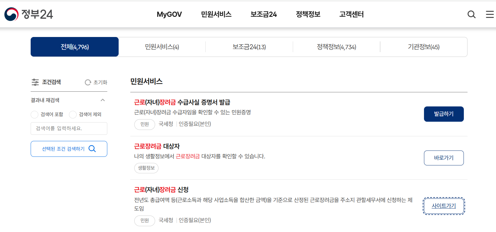 - 소득재산 등 증거자료 제출 불필요한 경우 : 국세처에서 확인한 소득, 재산 등의 자료와 동일한 경우