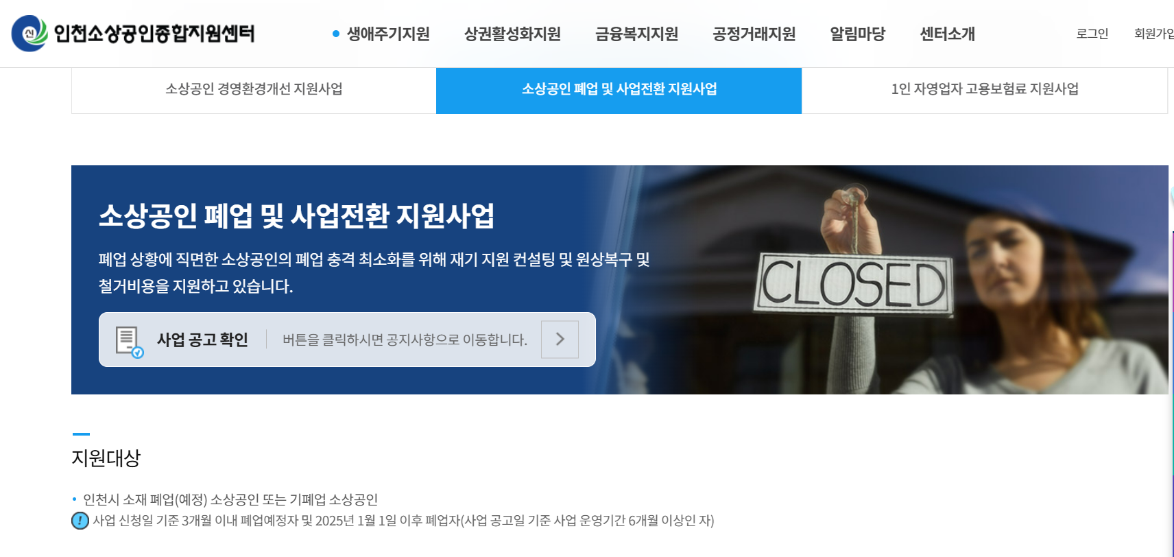 - 정부가 지정한 폐업지원 사업 신청 기한 내에 폐업 신고를 완료한 자